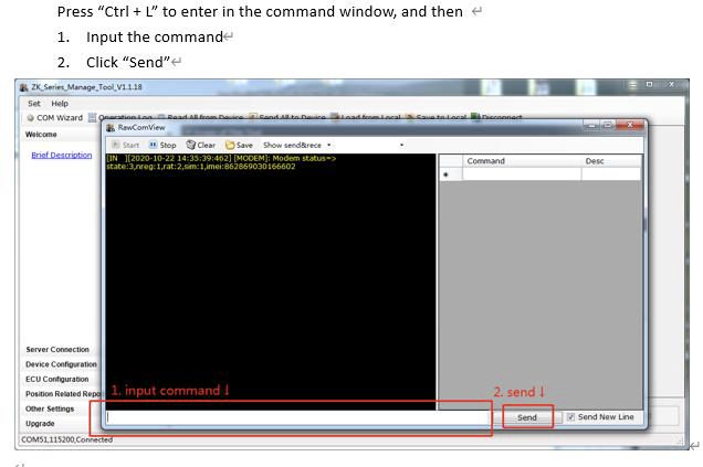 •Once connected, press CTRL+L on your keyboard to open the RawComView command prompt.